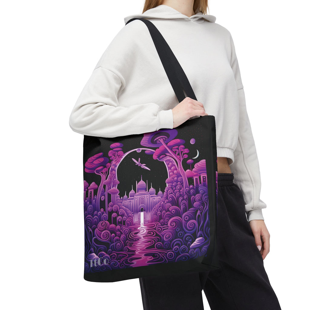 Add a burst of color to your daily routine with this TtCo Qasr al-Sahra 18" x 18" canvas tote. Featuring high-quality spun polyester and double-stitched seams, this tote is built for durability and strength. The cotton webbing straps ensure a comfortable carry, while the nonwoven laminate lining gives the bag a premium feel. Perfect for carrying your essentials with style, it showcases vibrant, eye-catching artwork that makes a statement.